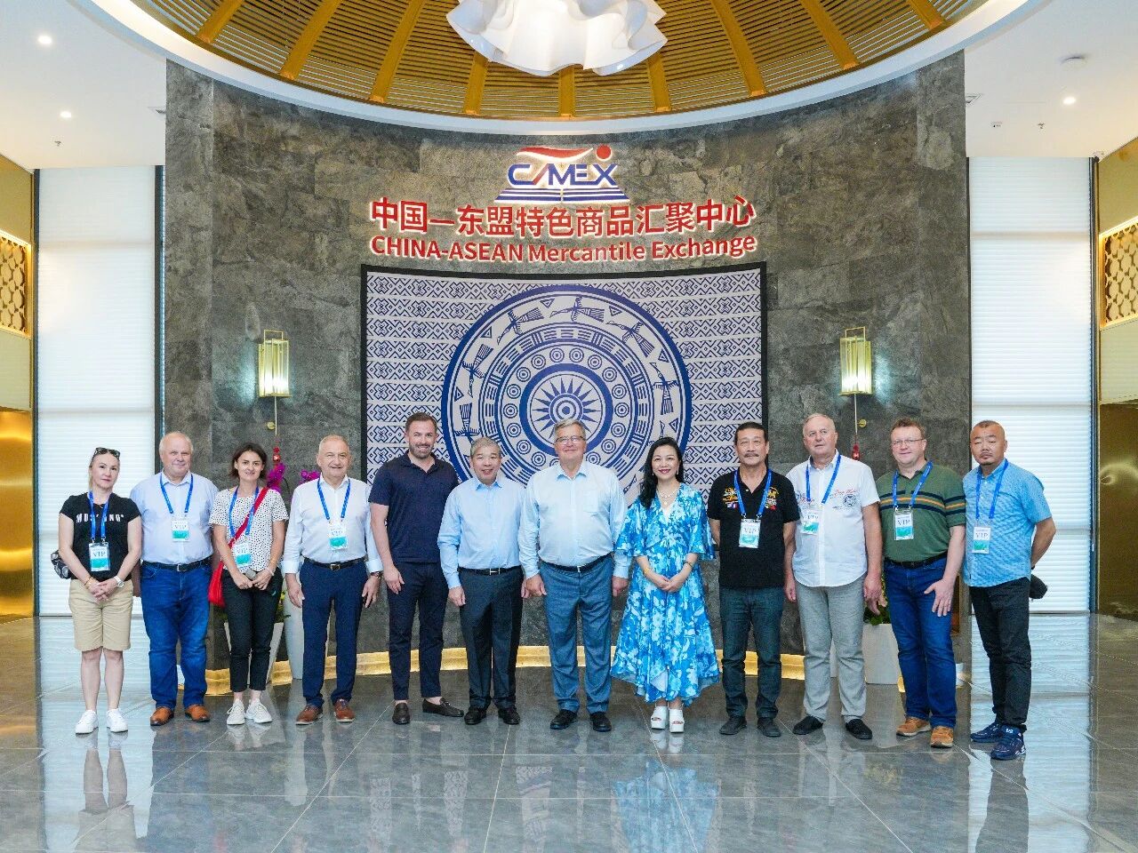 代表團(tuán)實(shí)地參觀了匯聚中心精心打造的多個(gè)文化主題館。各館以鮮明的地域文化特色、場(chǎng)景化展示和一站式商貿(mào)體驗(yàn),生動(dòng)呈現(xiàn)了中國(guó)與東盟各國(guó)之間的人文風(fēng)情、產(chǎn)業(yè)優(yōu)勢(shì)與廣闊前景。代表團(tuán)成員在參觀過程中駐足細(xì)看、交流探討、親身體驗(yàn),直觀感受項(xiàng)目在助推中國(guó)與東盟經(jīng)貿(mào)合作中發(fā)揮的積極作用,對(duì)這一融合文化與商貿(mào)的展示模式給予高度認(rèn)可。