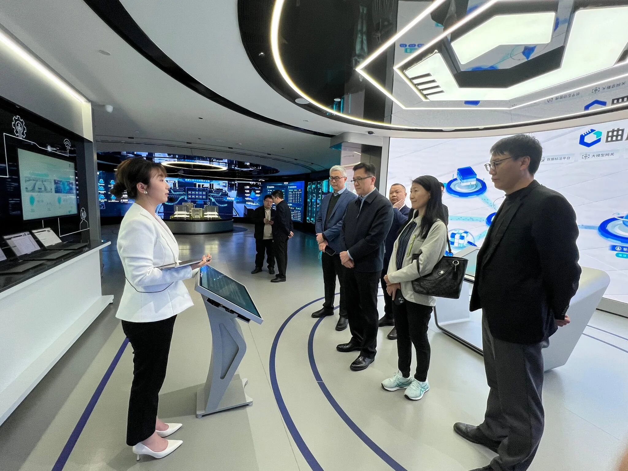 孫局長(zhǎng)到中國(guó)—東盟國(guó)家人工智能應(yīng)用合作中心展示中心調(diào)研,并參觀中心的展示廳。該中心是由廣西壯族自治區(qū)與東盟國(guó)家共建的人工智能合作平臺(tái),旨在推動(dòng)區(qū)域人工智能技術(shù)合作與產(chǎn)業(yè)數(shù)字化轉(zhuǎn)型,亦是面向東盟的產(chǎn)業(yè)高地。